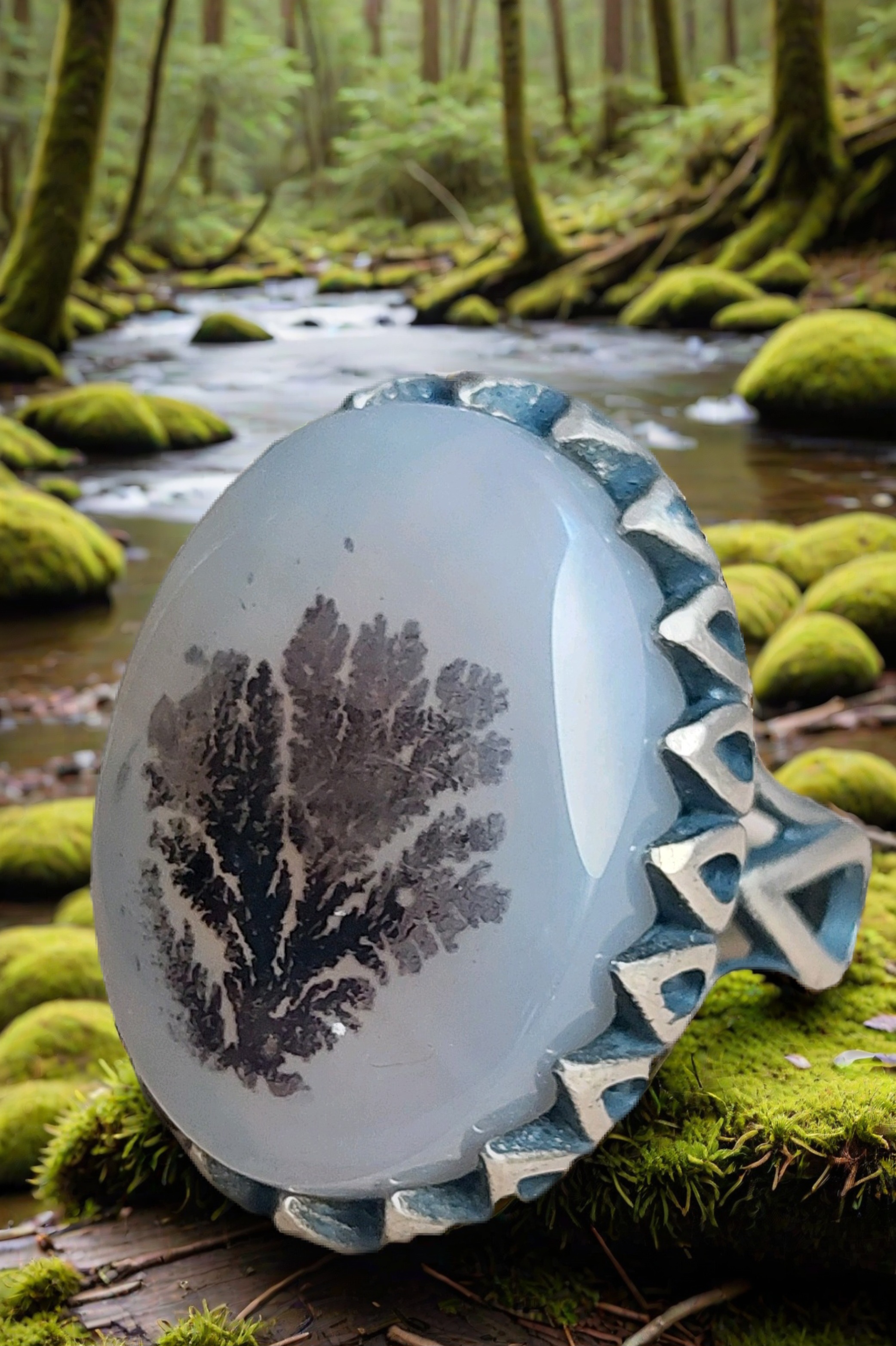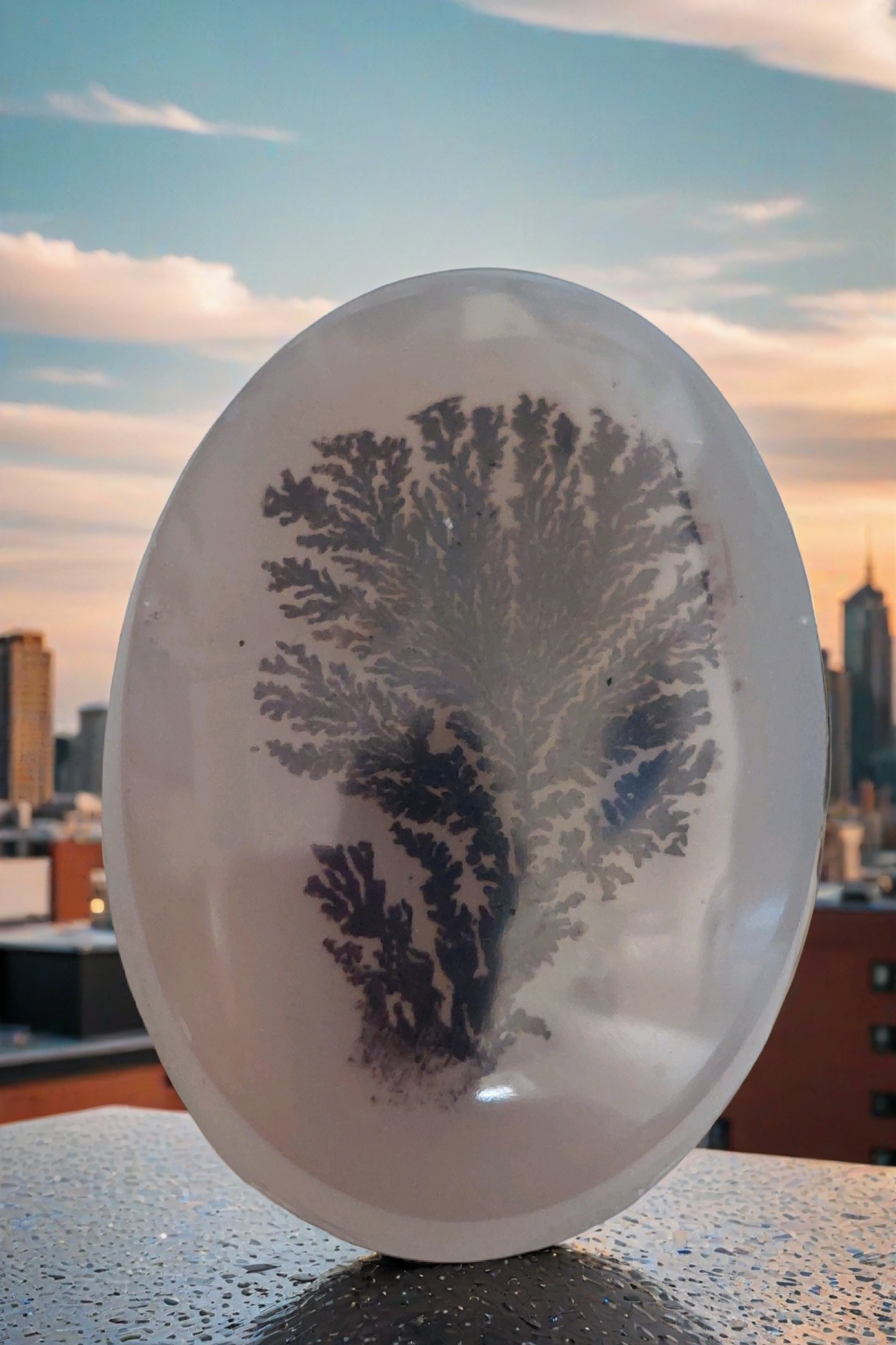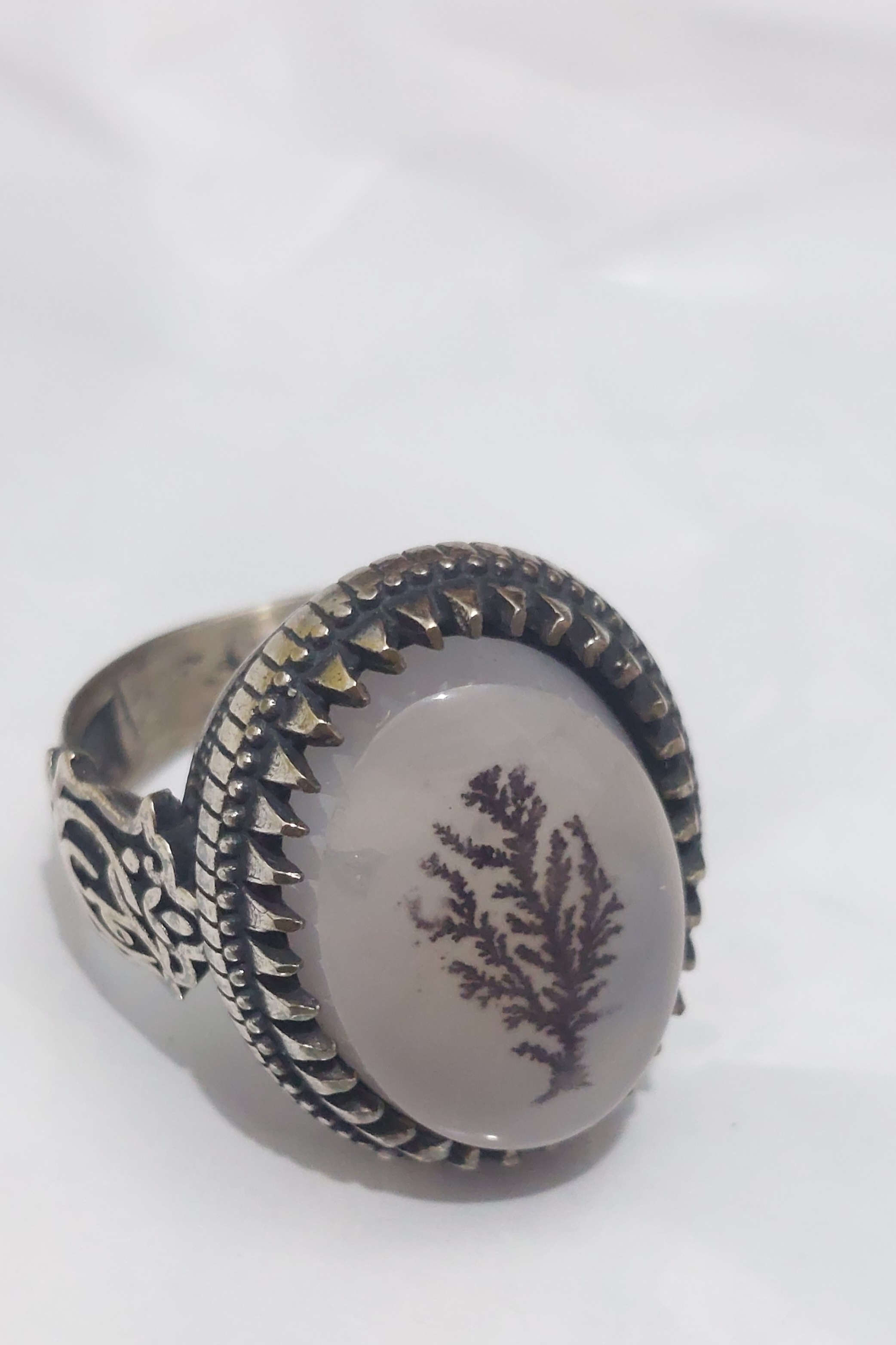 اما آنچه امروز به واقعیت نزدیک تر است نظری است که بیان میکند با قرار گرفتن سنگ عقیق در مجاورت فلزی به نام منگنز و با نفوذ ان فلز در روزنه های سنگ عقیق بصورت دندریتی اشکال مختلفی من جمله درخت یا تصاویر حیوانات و حروف و کلمات را نشان میدهد.