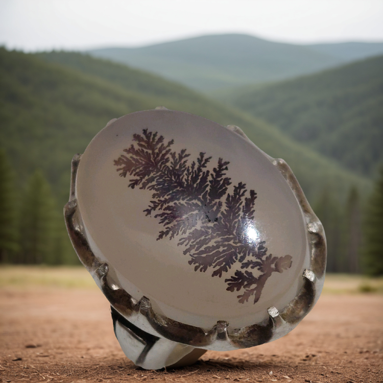 انگشتر نقره مردانه با سنگ عقیق شجر طرح درختی و رکاب دستساز – خاص، هنری، متفاوت