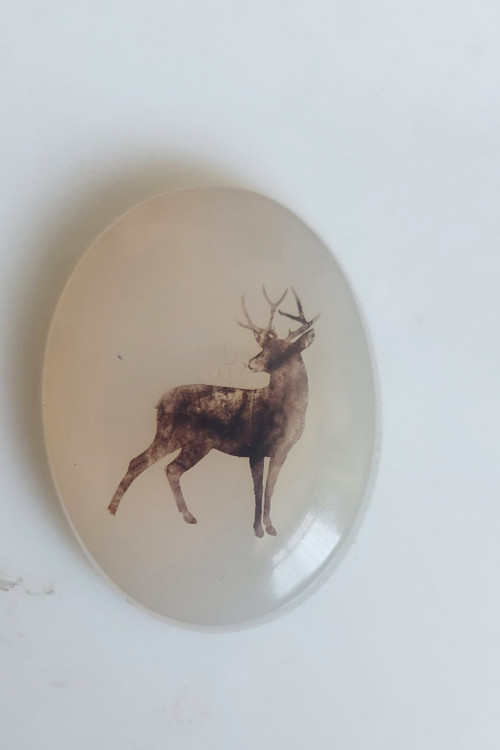نگین عقیق مصور با نقش گوزن – طبیعت در قاب سنگ
