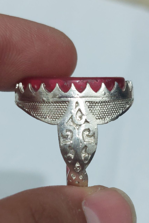 انگشتر طرح عقیق خطی با رکاب نقره روس (روکش نقره) | کد ۷۹۷