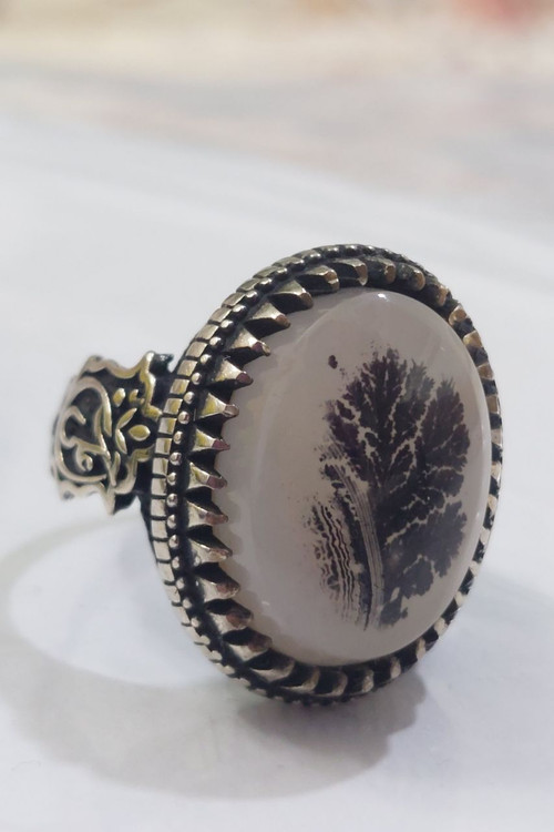 انگشتر شجر نقره روس نگین شجر متفاوت | کد ۸۲۲